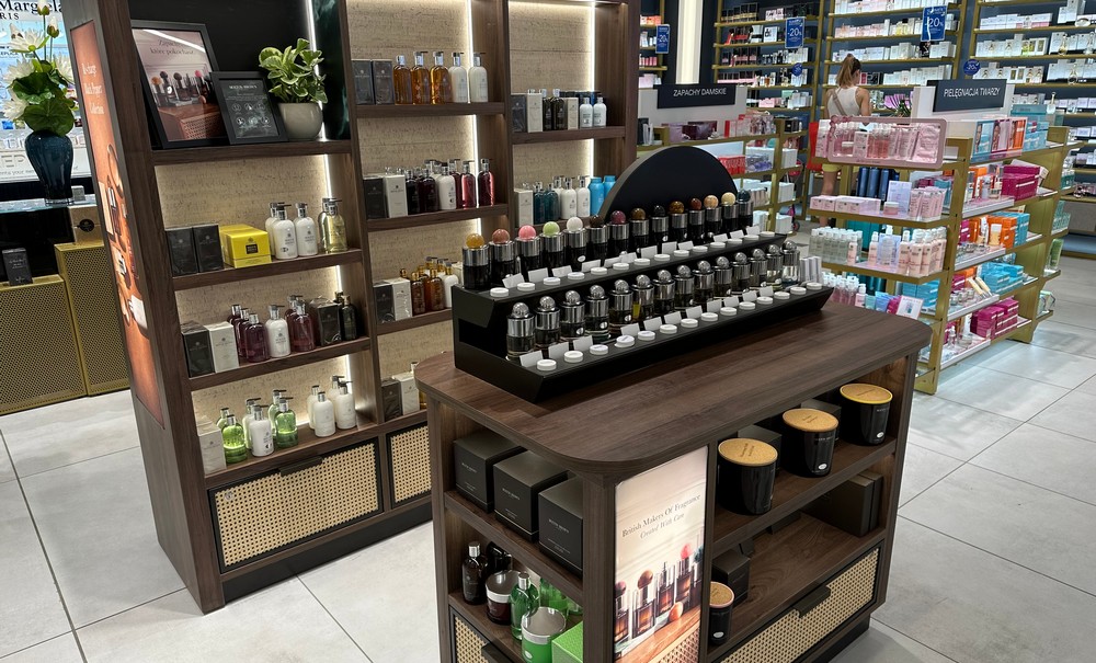 Κατασκευή επίπλων για το Molton Brown sis, εντός του πολυκαταστήματος Douglas στα εμπορικά κέντρα Arcadia και Atrium Promenada στη Βαρσοβία, Πολωνία