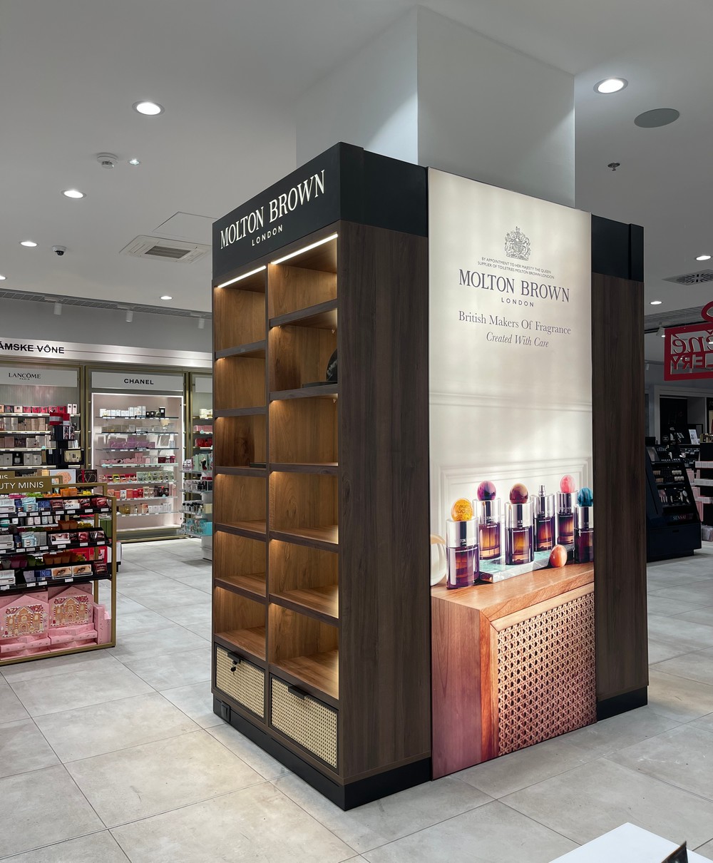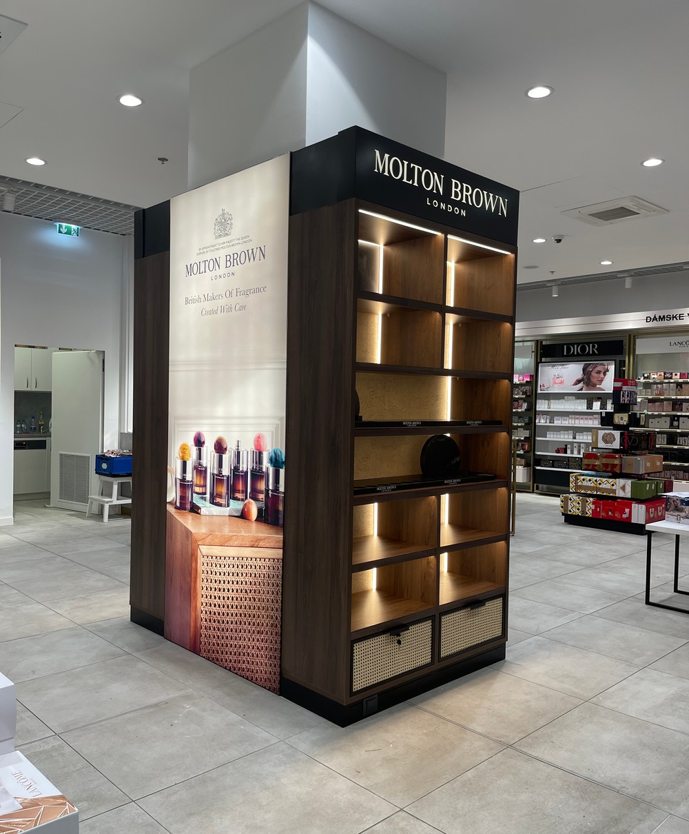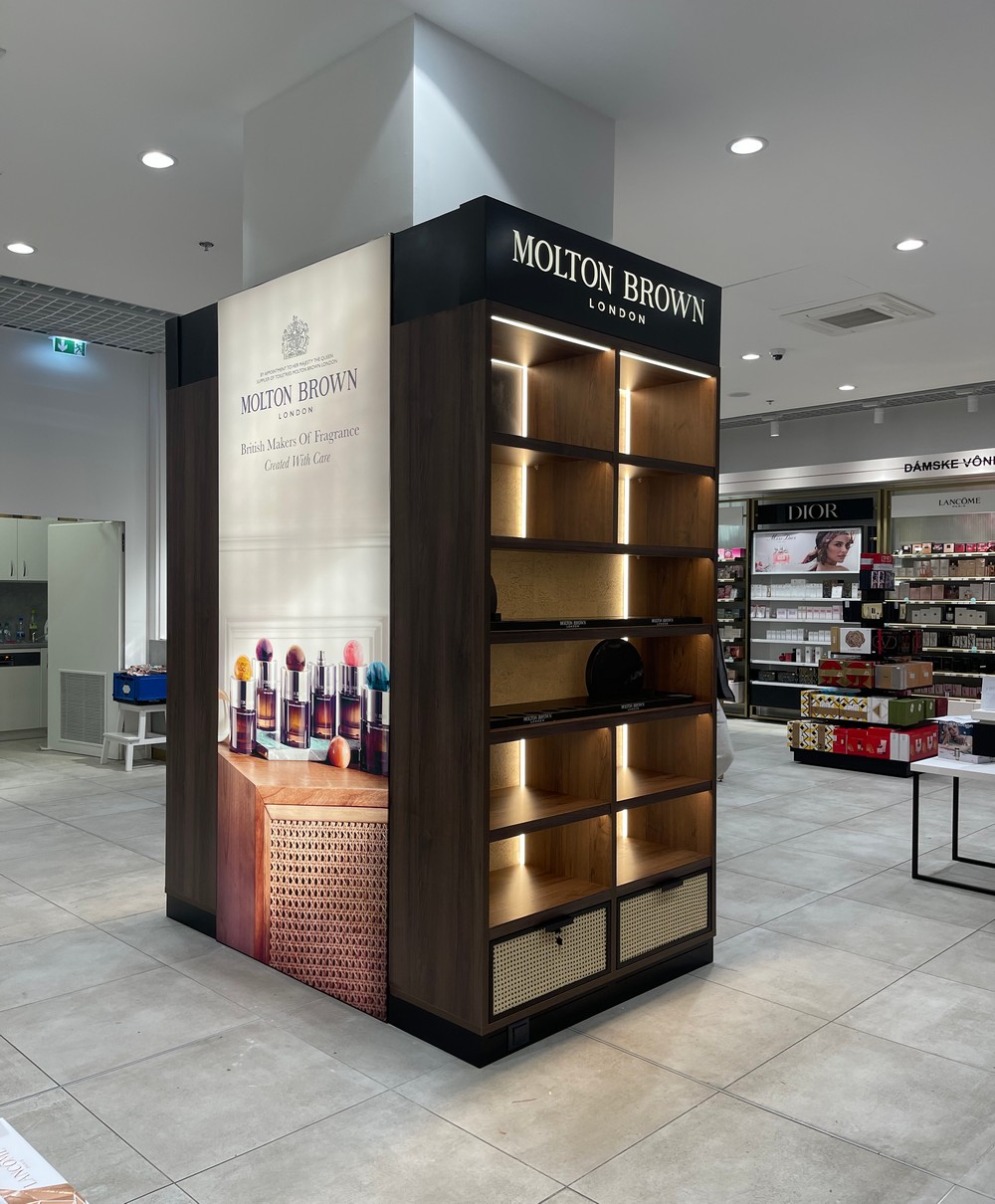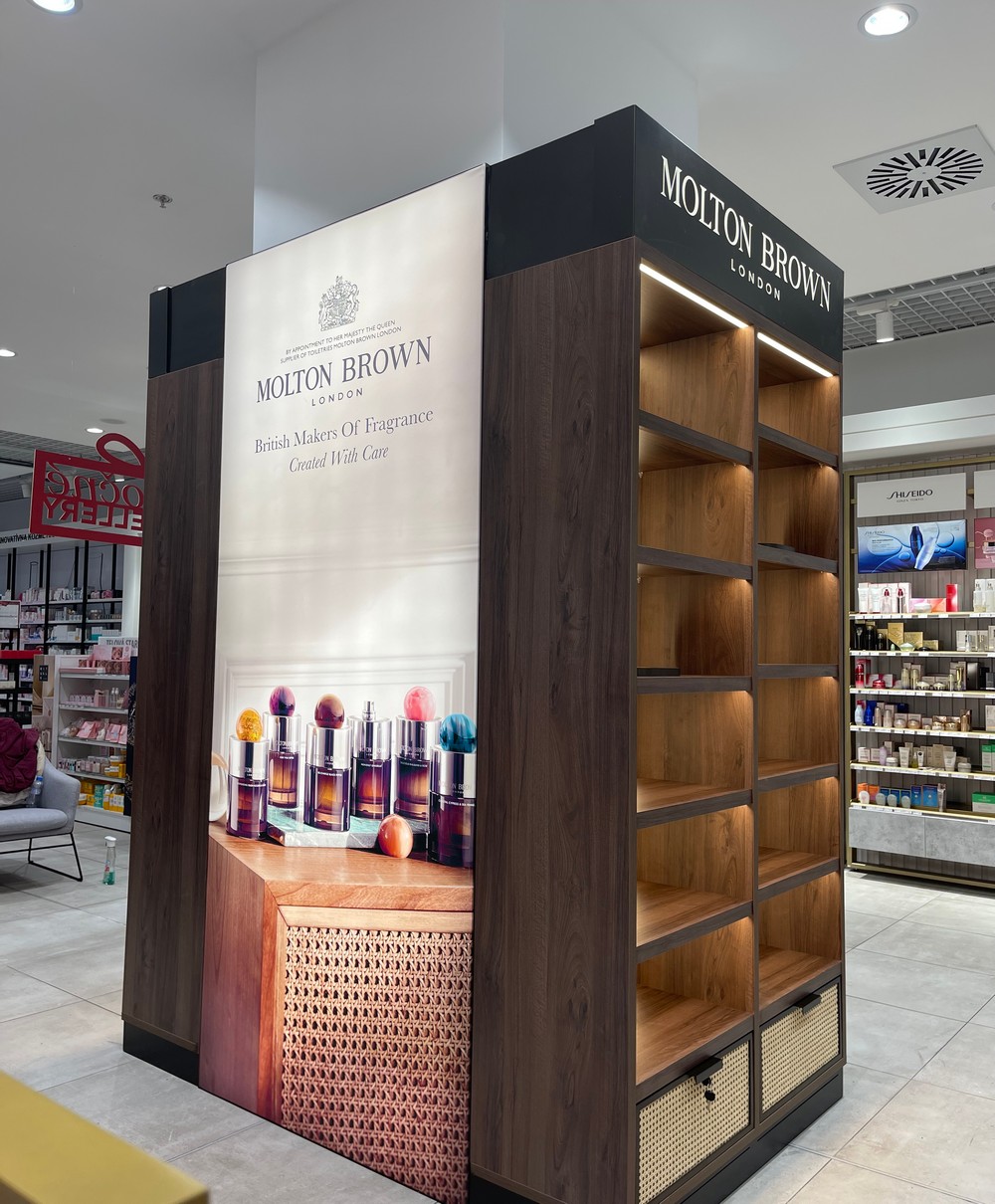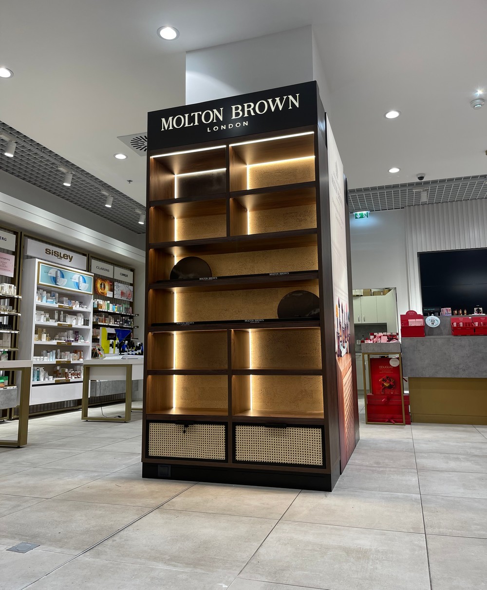 Κατασκευή επίπλων Molton Brown, εντός του καταστήματος Douglas στο εμπορικό κέντρο Nivy στην Μπρατισλάβα, Σλοβακία